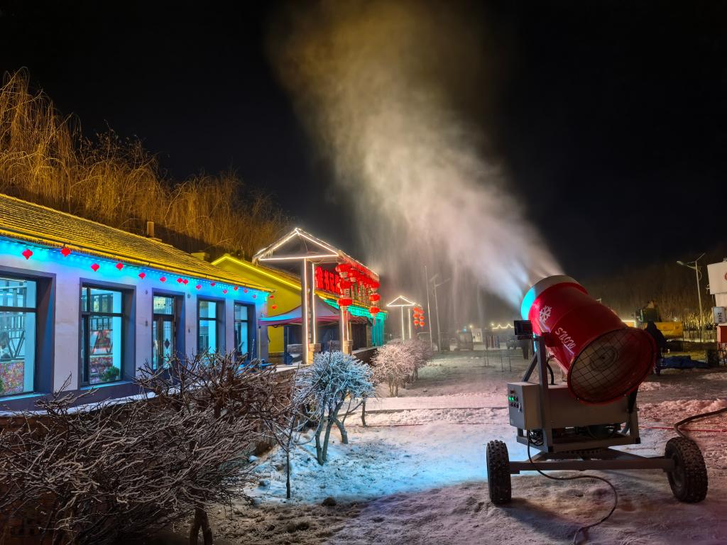 在鐵嶺市銀州區七里村,一臺機器正在加緊造雪。新華社記者武江民 攝