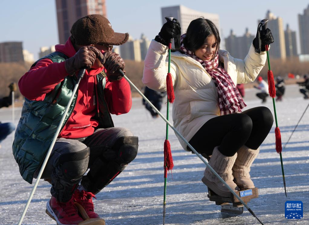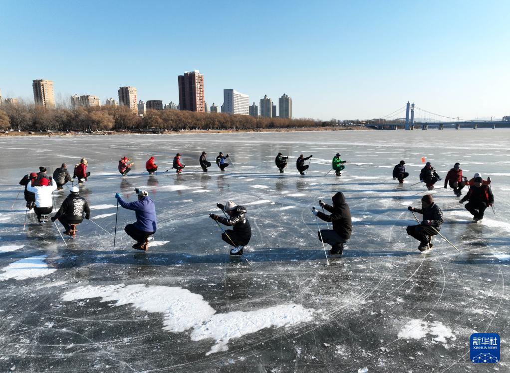 入冬以來,許多冰上運動愛好者來到遼寧省遼陽市太子河的冰面上享受騎行“單腿驢”的快樂?!皢瓮润H”是單刀冰車的俗稱,是東北地區常見的一項群眾冰上娛樂健身活動。