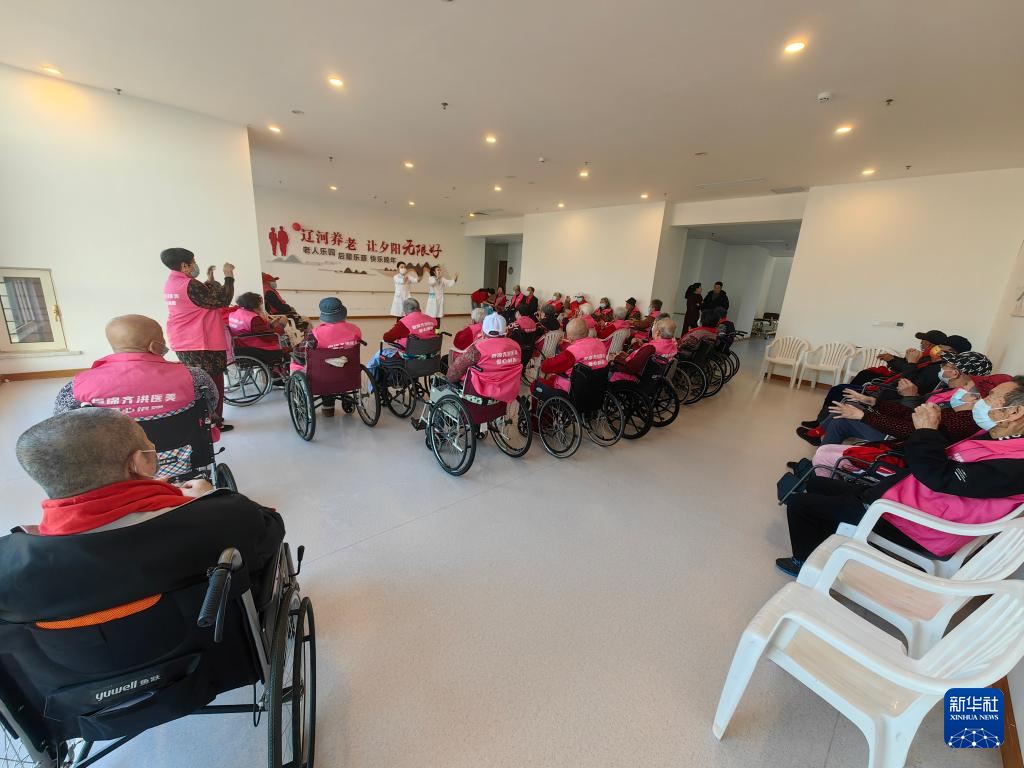 1月14日,遼河康養服務中心的幼師與老人們互動。 新華社記者 白涌泉 攝