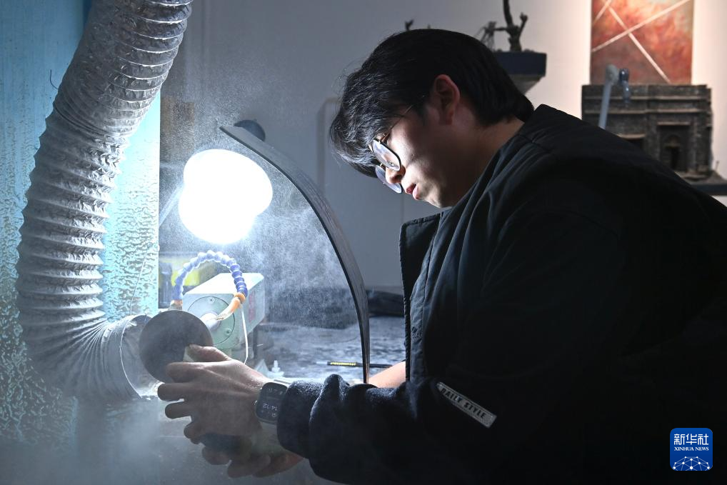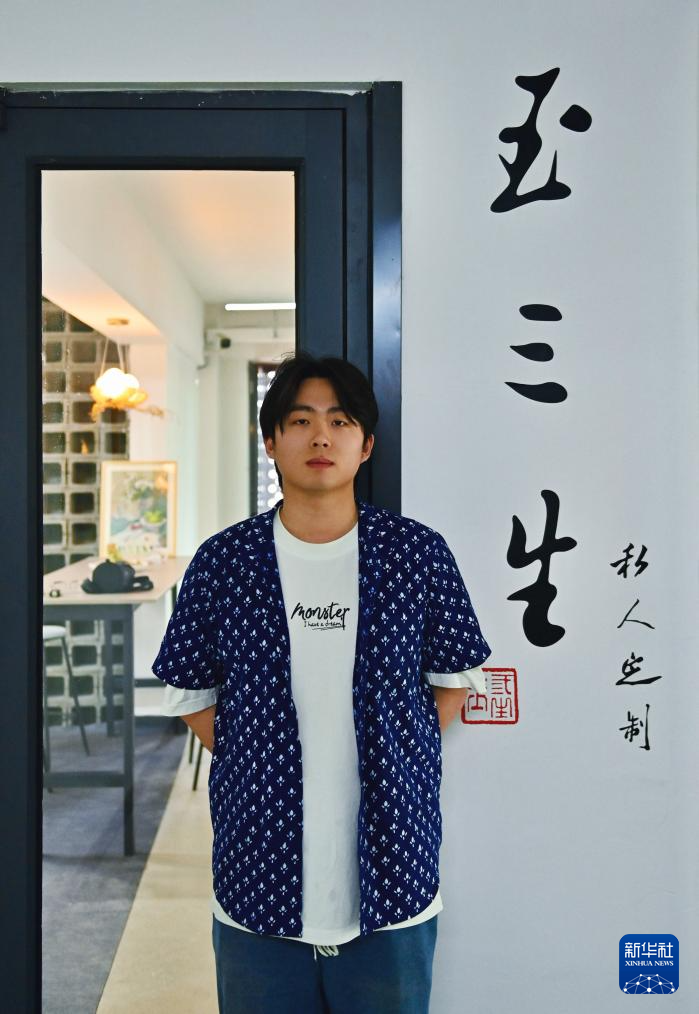 “00后”唐校是遼寧鞍山人。他自幼在身為玉石雕刻大師的父親唐帥的工作室里成長,浸潤于刻玉聲中。2023年從中國美術學院畢業后,他回到家鄉鞍山市岫巖滿族自治縣,創建“玉三生”工作室。