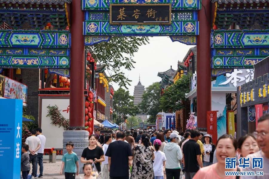 圖為游客、市民行走在朝陽市慕容街上。新華網發