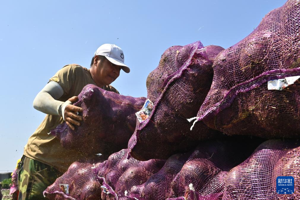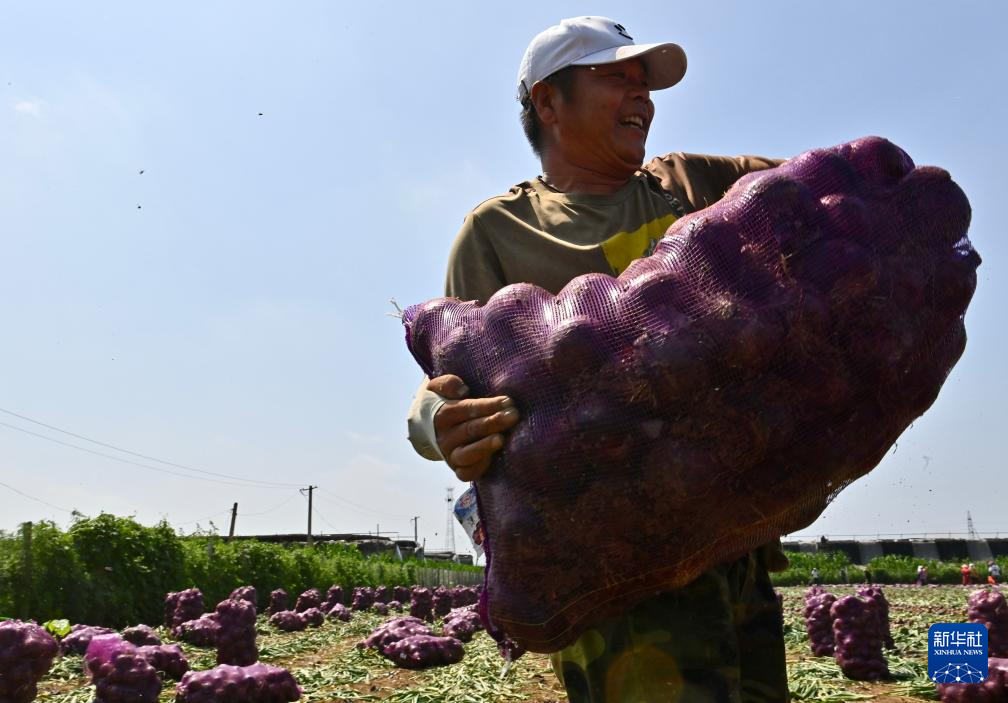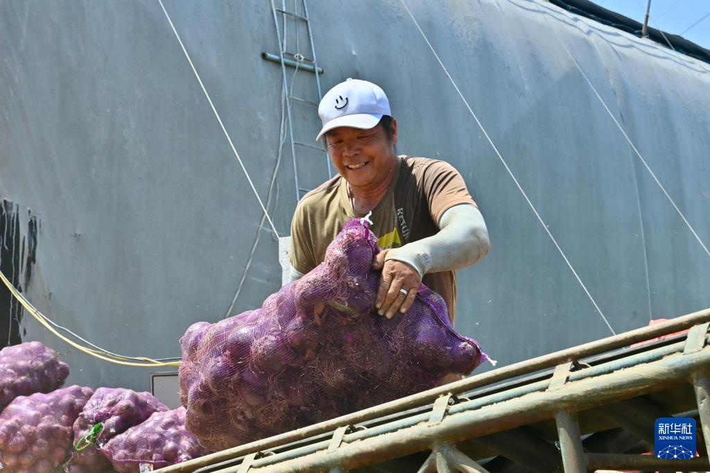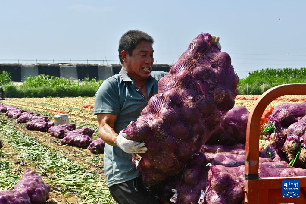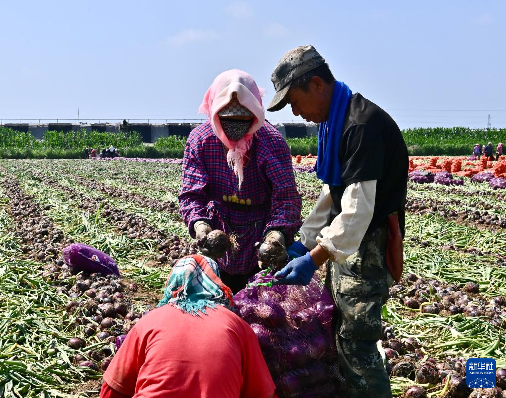 近日,遼寧省鞍山市海城市望臺鎮瑞亞蔬菜農民專業合作社的圓蔥迎來豐收。農戶們打包、裝車,田間地頭一片繁忙景象。