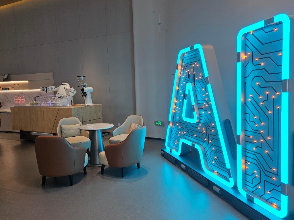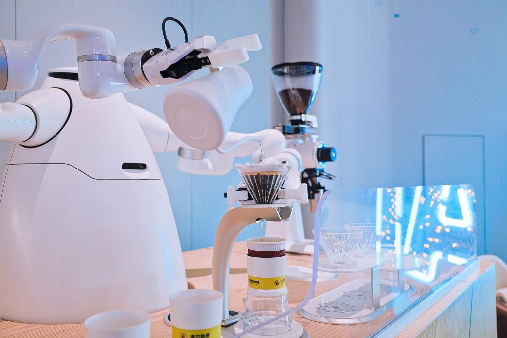 按下按鈕,咖啡機器人便扭動著兩條機械臂,自如地完成磨咖啡豆、接粉取水、三段式沖煮等流程,端上一杯香氣四溢的美式咖啡;站在“換裝魔鏡”前,隔空擺動手勢就可以更換“身上”的衣服;在大屏幕上輸入指令,可以讓圖片秒變視頻……