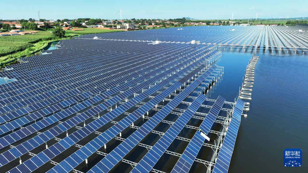 7月30日在鐵嶺縣大青水庫拍攝的光伏發電板(無人機照片)。