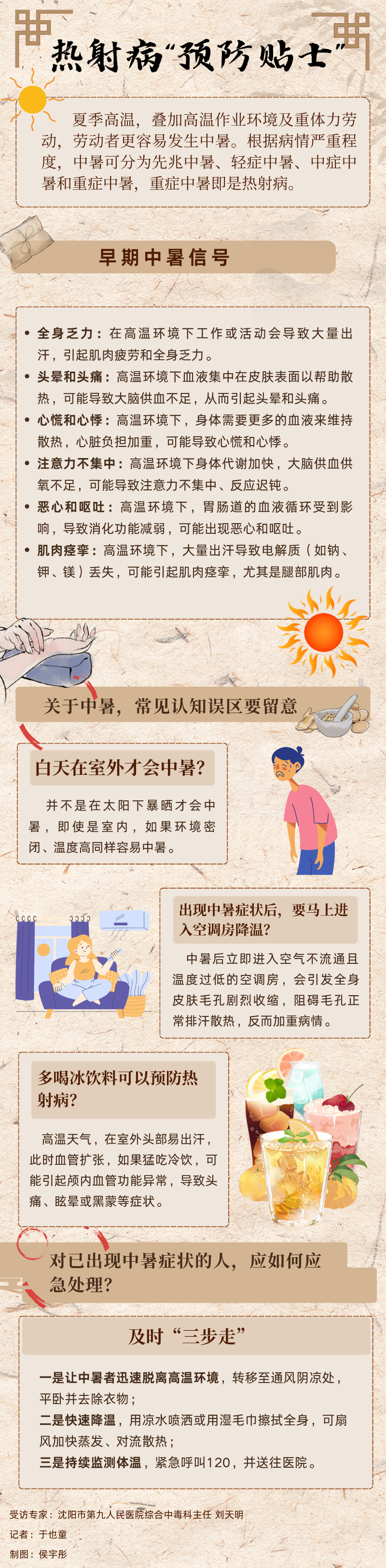 新華社沈陽8月1日電(記者于也童)連日來,多地持續高溫。熱浪來襲,不少高溫下的勞動者容易患上熱射病。什么是熱射???熱射病有何信號和癥狀?關于中暑,哪些誤區需要厘清?記者就公眾關心的這些問題采訪了相關專家。