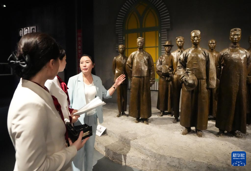 7月28日,在“九一八”歷史博物館,石任華(左)和同事交流展陳和講解融合技巧。
