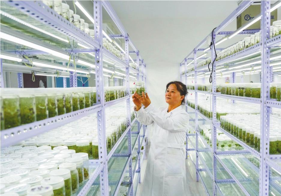 去年7月,大連金普新區成功入選國家第二批數字鄉村試點地區。一年來,新區全力推動試點建設,重點打造現代農業科技創新創業綜合服務中心、種業創新區和數字農業示范區三大項目。依托大連金州國家農業科技園區,櫻桃藍莓“兩果”及蔬菜育種基地初具規模,吸引多家知名企業、高校、科研機構進駐。圖為大連金州國家農業科技園區內,工作人員在重組優質基因,繁育藍莓苗種,為小漿果安上中國“芯”。(記者 樸峰)