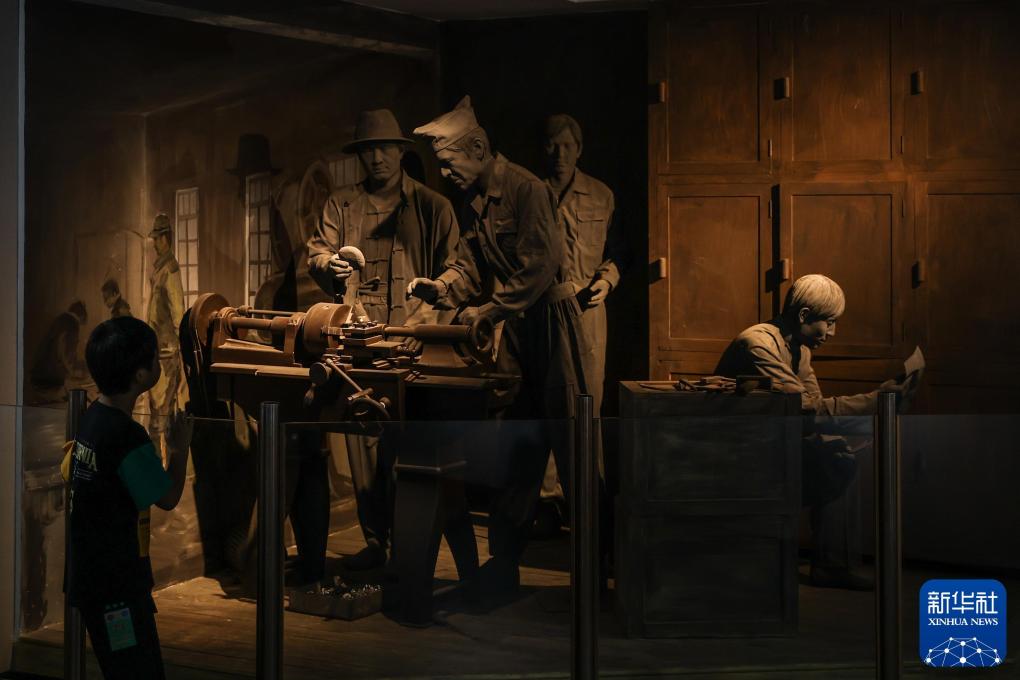 8月5日,小朋友在沈陽二戰盟軍戰俘營舊址陳列館內觀看展品,展品所展示的內容是關于中國工友對盟軍戰俘的幫助。