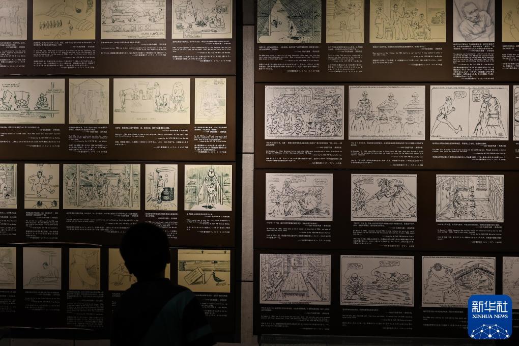 8月5日,參觀者在沈陽二戰盟軍戰俘營舊址陳列館內觀看展品。