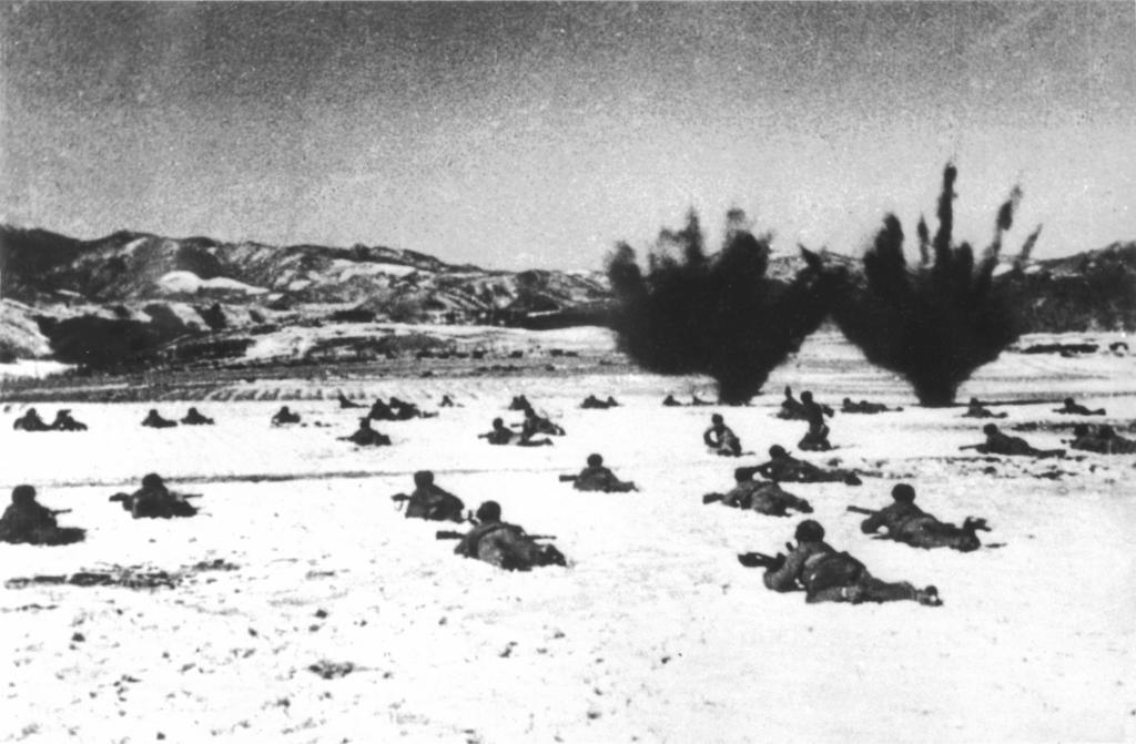 ↑1950年11月27日,志愿軍第9兵團在長津湖地區對美軍發起猛烈反擊,將敵分割包圍于新興里、柳潭里、死鷹嶺、下碣隅里、古土里等地,并予以殲滅性打擊。第9兵團在饑寒交迫、非戰斗減員劇增和裝備低劣的情況下,完成了艱巨的作戰任務。志愿軍第9兵團向美軍發起反擊。這是志愿軍第9兵團向美軍發起反擊。新華社發(抗美援朝紀念館供圖)