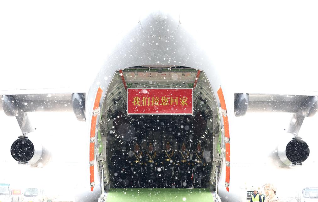 ↑2023年11月23日,第十批在韓中國人民志愿軍烈士遺骸抵達沈陽桃仙國際機場。新華社記者 曹燦 攝