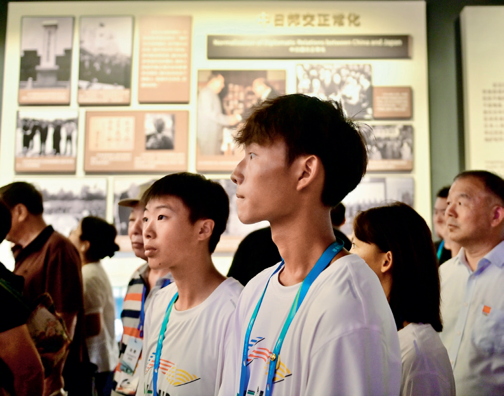 第一屆全國青少年田徑運動會期間,運動員代表在“九·一八”歷史博物館參觀(2025 年 8 月 12 日攝) 吳青昊攝/本刊