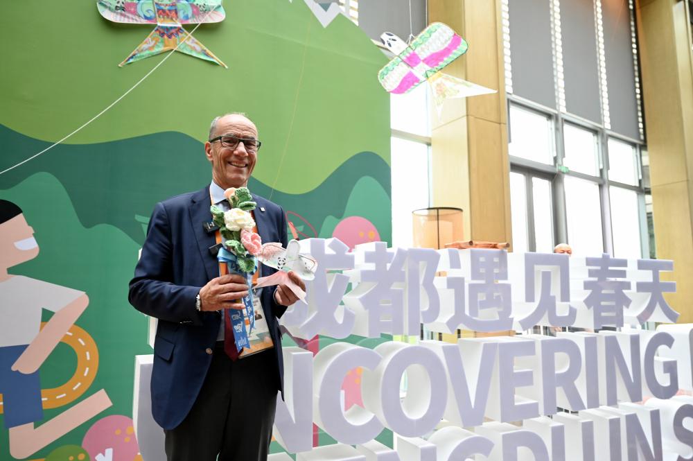 資料圖:2023年3月28日,雷諾·艾德在成都考察成都大運會籌備工作。新華社發(劉海韻 攝)