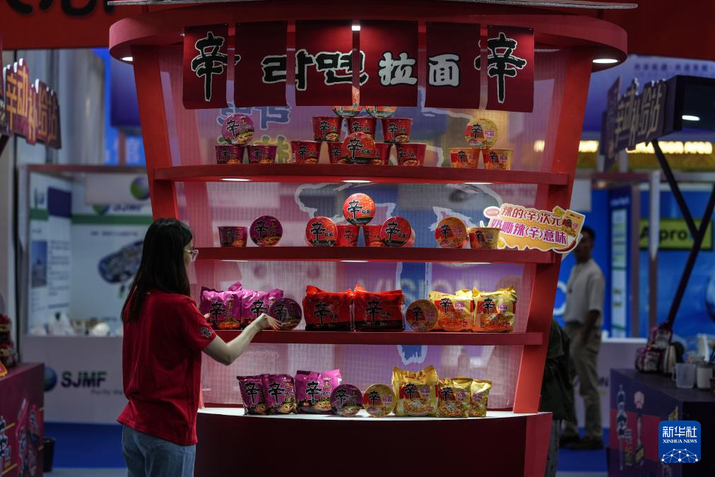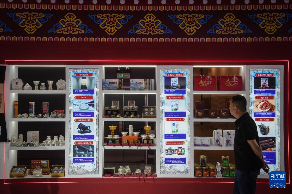 9月25日,工作人員在遼洽會主題展覽上整理展出的商品。