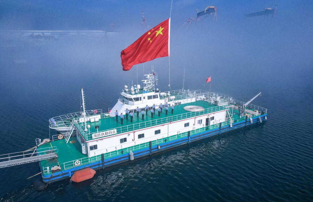 國慶將至,大連邊檢站執勤十一隊民警整齊列隊在“中國移民管理21401”艇旁,向國旗莊嚴敬禮,表達對祖國繁榮昌盛的美好祝愿。