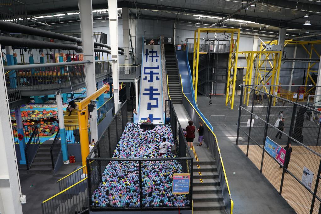 新華網沈陽10月12日電(記者潘昱龍)沈陽第四糧庫是一處承載著老沈陽人記憶的地方。這里曾是沈陽重要的糧食儲備和供銷基地,隨著時間推移,這座倉庫完成了自己的使命?!袄先ァ钡膫}庫并沒有被廢棄,改造工程讓老地方煥發新活力。設計團隊在保留原有建筑風貌的基礎上,融入了現代設計理念,將儲糧倉庫改造為游樂場,成為潮玩新地標。