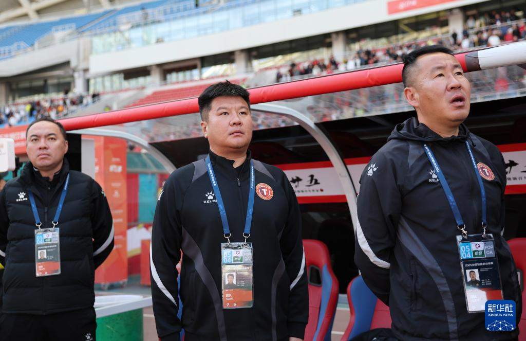5月4日,遼寧鐵人隊主教練李金羽(中)在比賽前。當日,在沈陽舉行的2025中國足球甲級聯賽第七輪比賽中,遼寧鐵人隊主場2比1戰勝陜西聯合隊。新華社記者 李鋼 攝